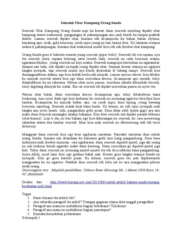 Pokdarwis batuq bura ungan uwee juara harapan 1 tingkat provinsi kaltim 2021 . Tidak dikenal apakah bahasa ini yaitu dialek tersendiri atau adalah struktur yang menjadi pendahulu bahasa sunda modern. Kumpulan contoh artikel bahasa sunda berbagai tema lengkap, tentang kesehatan, lingkungan hidup, budaya, teknologi, pendidikan, kesenian, sejarah, dll. Gagasan anu diangkat dina tulisan kudu patali jeung kapentingan jalma rea. Artikel adalah bagian tulisan non fiksi yang berbentuk bebas bagian dari penerbitan seperti laporan esai.