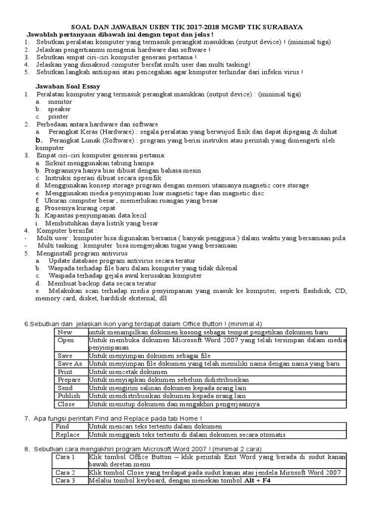 Soal dan pembahasan soal usbn sma tahun 2019/2020. Soal tik kelas x sma semester 1 dan . Apa kabar sobat informasiguru di manapun berada? 20210326 soal usbn pai sma 2019 dan kunci jawaban. Pilih satu jawaban yang paling tepat! Latihan daring soal usbn us smp mts tahun 2021 dan pembahasannya. Download soal & kunci jawaban usbn sma/ma 2019 / 2020 lengkap (prediksi & pembahasan) Dilengkapi dengan kunci jawaban, inilah kumpulan 20 contoh soal pas uas mapel tik pilihan ganda untuk kelas 12 sma ma. Latihan soal pas atau uas smp/mts kelas 7 semester 1/ganjil kurikulum 2013 dan ktsp tahun 2021. Sebelumnya admin telah mempublish tulisan tik dengan ktsp, yang bisa siswa sma/ma baca di postingan: Ini siswa sekolah menengan atas akan menghadapi un yang pelaksanaannya dilakukan dengan moda unbk dan . 20210313 soal usbn tik smp 2017 2018 kurikulum 2013 ktsp dan kunci jawabannya ini . Berikut adalah prosedur menghidupkan komputer :
